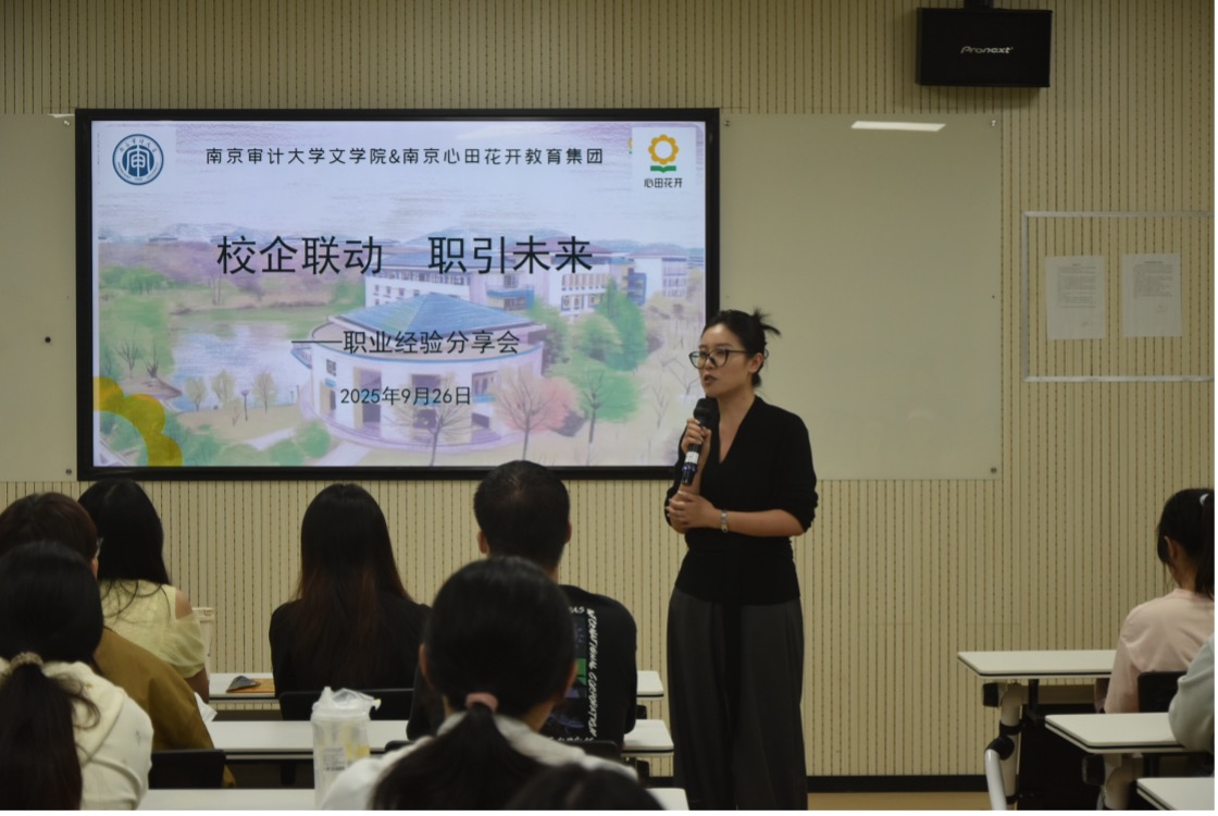 心田花开教育集团南京分校的卢家琪校长应邀主讲,以其丰富的行业阅历和独到见解,为在场学子带来了一场干货满满的“求职指南”。