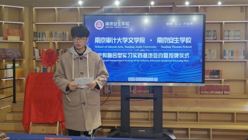 为促进理论与实践结合,提升学生专业素养,培养适应新时代教育发展需求的高素质师资力量,2025年12月25日下午,我校文学院与南京安生学校举行产教融合型实习实践基地签约暨授牌仪式。
