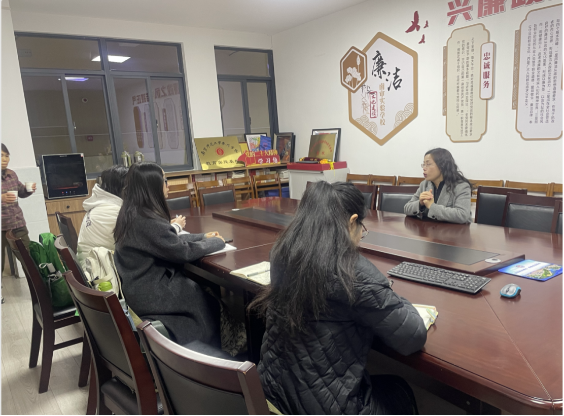 上午,李佳、高惠老师首先来到南审附属实验学校。在校办陈主任的带领下,两位老师实地走访了校园环境,了解了实习生的日常工作安排,并与实习生亲切交谈。双方围绕实习细则、时间分配、实习目标等进行了深入沟通。